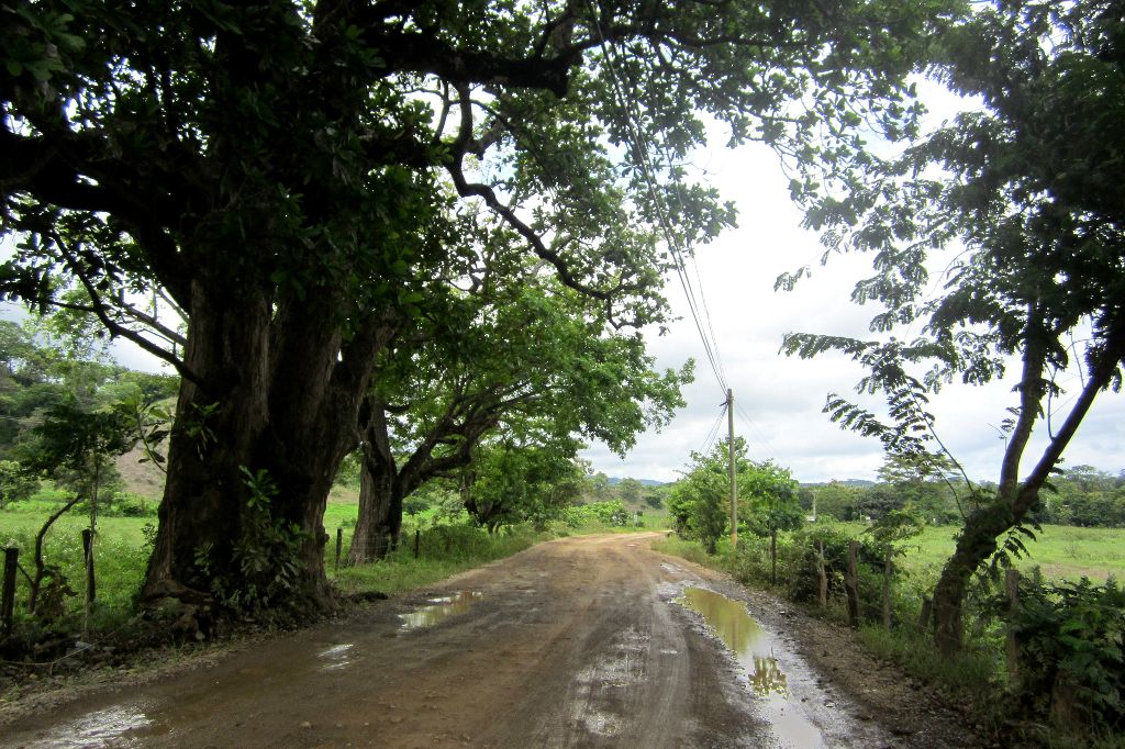 Driving west to the Pacific coast from Liberia. Smooth pavement! Better watch out, lizards! Why did the lizard cross the road? We’ll never know.