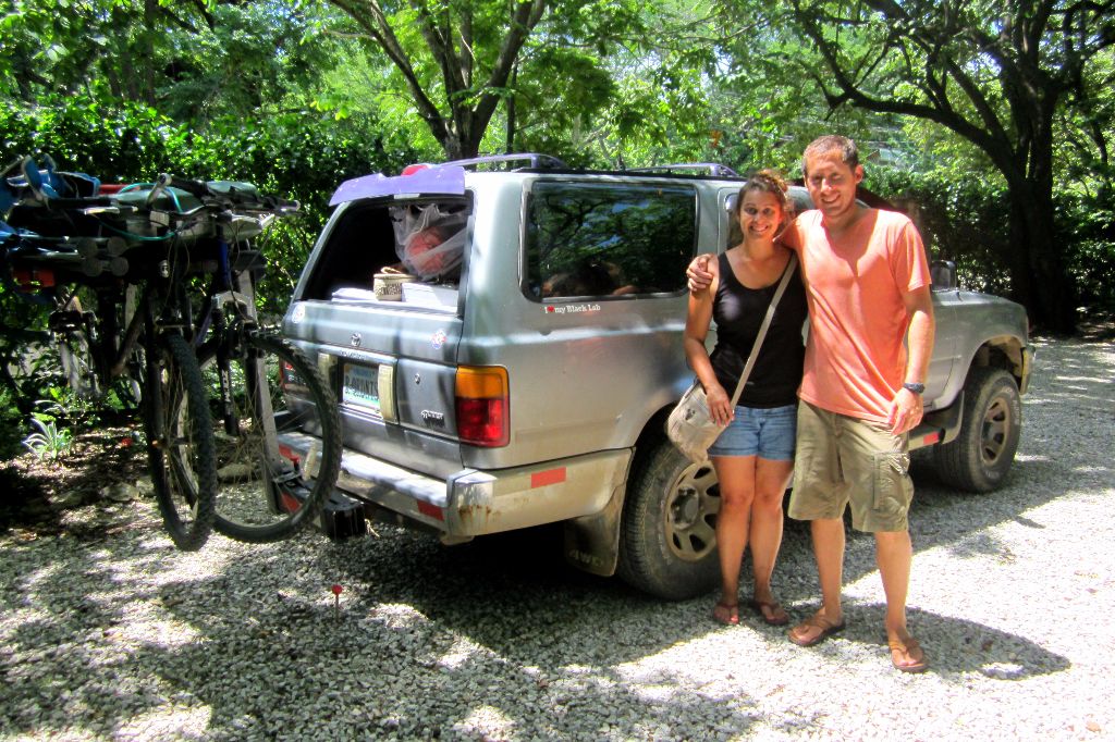 We decide to spend a few days in Tamarindo, to see what all the fuss is about. A primary tourist destination in northwest Costa Rica, it has managed to keep it’s small town charm. No buildings higher than a couple stories, unlike the looming high-rises of the Mexican beach resorts. Just endless surf shops, restaurants, shopping and beach! We think this is a perfect spot to pick up surfboards and so we go on a hunt for used ones. Somebody knows somebody who knows somebody who’s selling a board… boom. Bruno’s packed to the gills. Can’t even see that bicycle on the roof, can you??